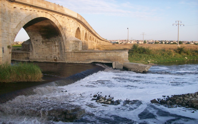 Dünyanın en uzun taş köprülerindendir. Sultan II. Murat’ın emriyle yapılmıştır. Köprü’nün ve şehrin inşasına Gazi Mahmut Bey nezaret etmiştir. İnşaat masrafları Üsküp Sancağı’ndan İshak Bey tarafından, Kratova gümüş madenlerinden elde edilen gelir ile karşılanmıştır. Köprünün yapımına 1427 yılında başlanmış ve 1443 yılında tamamlanmıştır. 1444 yılında Sultan II. Murat’ın önderliğinde büyük bir törenle açılmıştır. Köprü yapıldığında 174 kemer olarak inşa edildi. Zamanla yapılan onarımlar sonucunda iki göz diğer gözlerle birleştirilerek günümüzde 172 göz olmuştur. Köprü halen araç geçişinde kullanılmaktadır.